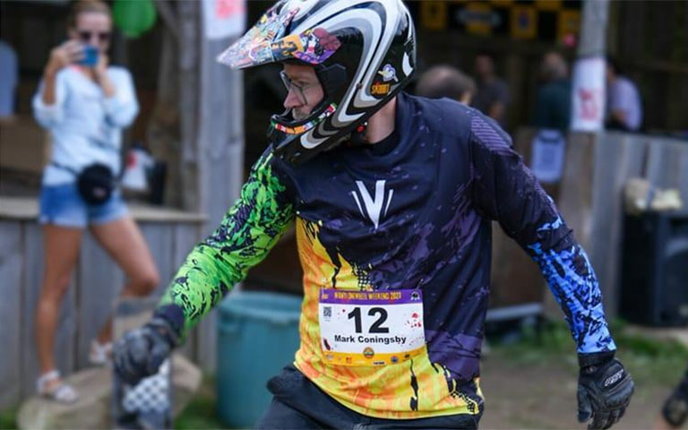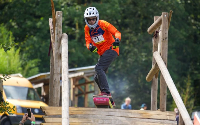 Helmet and wrist guards are compulsory when racing and Helmets must be worn at all times when riding a OneWheel, even if just going from your car to your tent. Protective body armour and kneepads are recommended as the track has several obstacles and minimal runoff in places